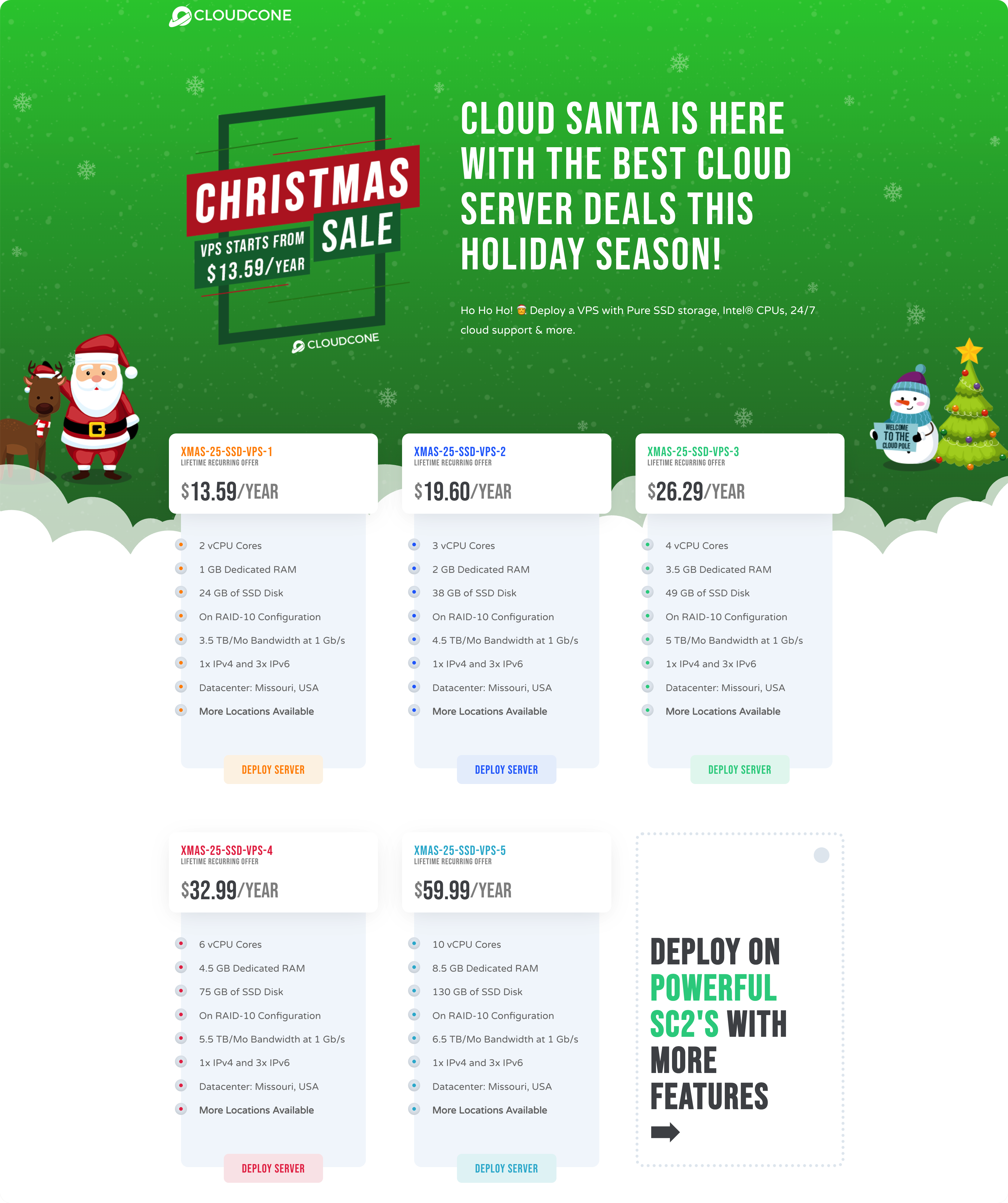 如果你满足这三个条件,那就不用想太多了,现在 CloudCone 正在搞圣诞大促、VPS 低至 13.59 美金 / 年,直接通过下面这个入口下单: